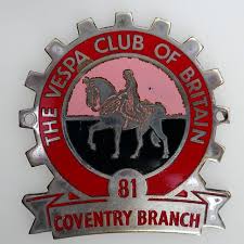 Welcome to this page for Coventry Vespa Club. The club formed as a branch of the Vespa Club of Britain in the 1960's and was at the time Branch 81. This later became Branch 22 for a while until the original Branch 22 wanted their number back so Coventry reverted to being Branch 81. The original cog was pink and black with a red border. The design was updated in 2014 with the colours changing to sky blue and royal blue to reflect the 'Sky Blue City' that is Coventry. In 2024 the logo was updated to tidy up the centre part and add in the Three Spires of Coventry. Ever present though in the design is the centre art work of Lady Godiva on horse back.